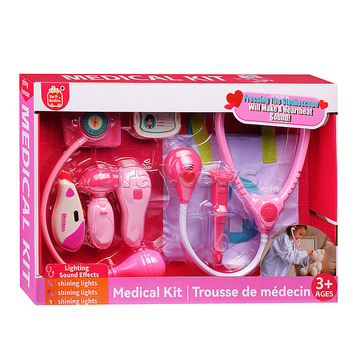 Код: 492371 Штрихкод: 6933117995928 Страна производитель: Китай Размеры упаковки: 42 x 28 x 6 см Количество в коробке: 36 • В наборе: - отоскоп с подсветкой (10х5 см.) - термометр с подсветкой (10х4.5 см.) - стетоскоп (без механизмов) - аксессуары. • Отоскоп работает от 2-х батареек "AG10" (входят в комплект) • Термометр работает от 2-х батареек "AG10" (входят в комплект) • Материал: пластик. • Соответствует требованиям безопасности и качества продукции. • Для детей от 3-х лет. Комментарии к товару