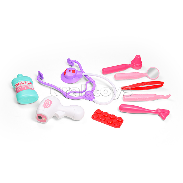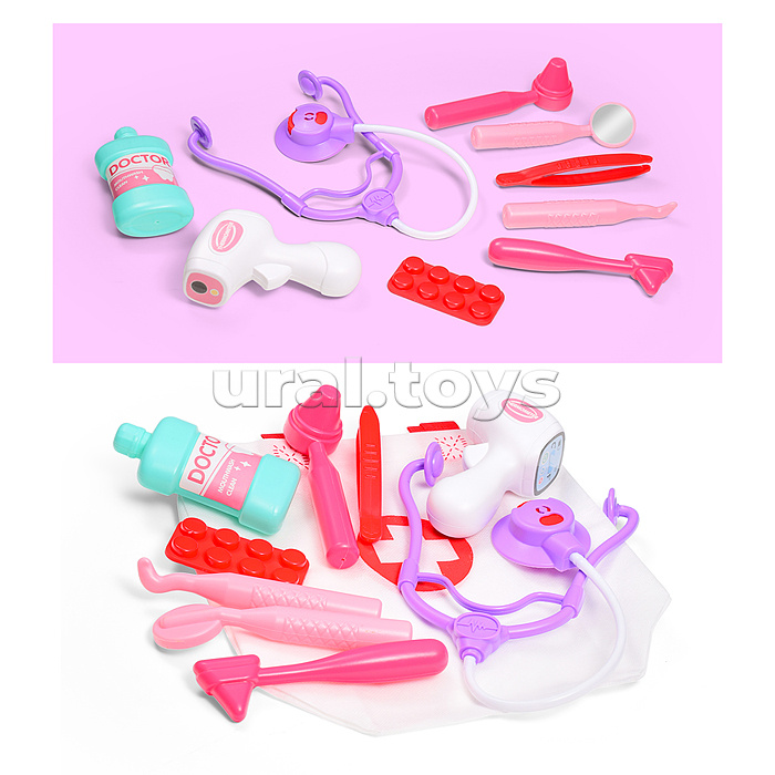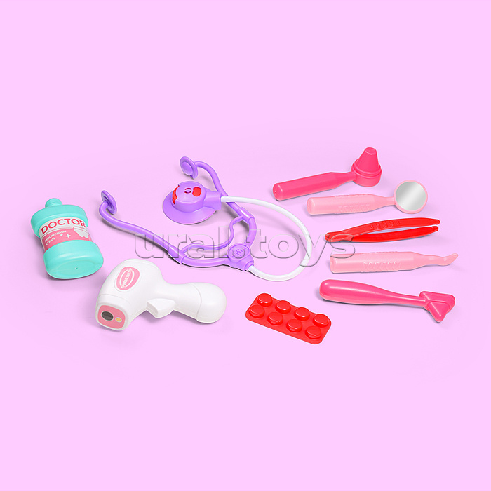 Код: 490916 Штрихкод: 6933117783556 Страна производитель: Китай Размеры упаковки: 24.5 x 6 x 24 см Количество в коробке: 72 • В наборе: - стетоскоп. - термометр. - пинцет. - таблетки (муляж). - аксессуары. - сумка. • Материал: пластик. • Соответствует требованиям безопасности продукции. • Для детей от 3-х лет. Комментарии к товару