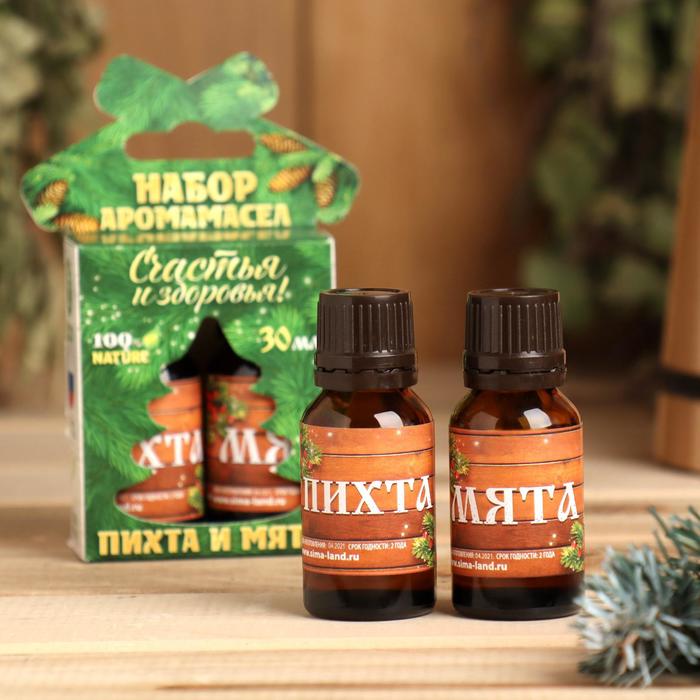 Набор эфирных масел 2 шт. по 15 мл, пихта и мята "Счастья и здоровья!"