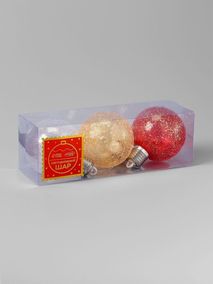 Встроенный светодиод с тёплым белым свечением создаёт мягкую, уютную атмосферу, подчёркивая красоту новогоднего декора. Питание от трёх батареек LR44 позволяет использовать шары без проводов, обеспечивая свободу в оформлении и безопасность при эксплуатации.