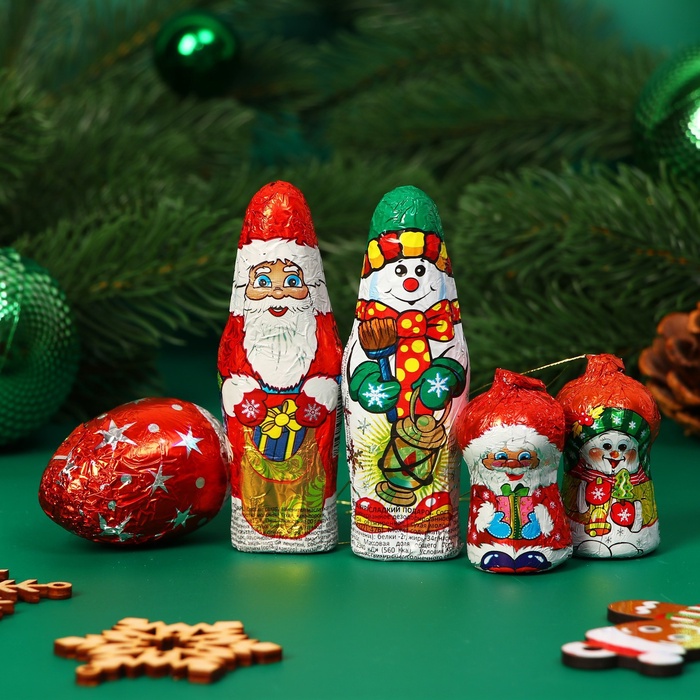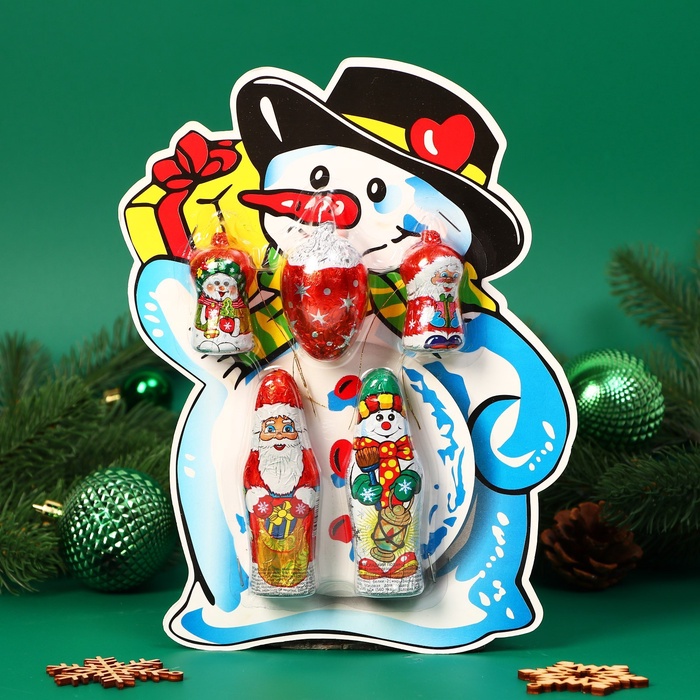 Набор фигурного шоколада в блистере «Дед Мороз, Снеговик, Шишка», 81 г