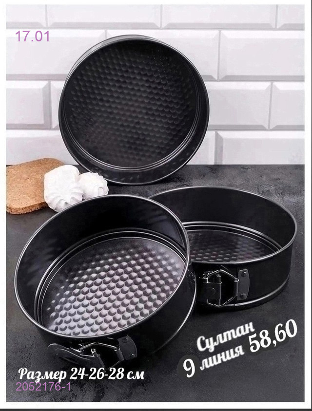 Набор форм для выпечки 3в1 Размер: 24 см, 26 см, 28 см Цвет: черный Материал: углеродистая сталь Высота формы: 6,5 см