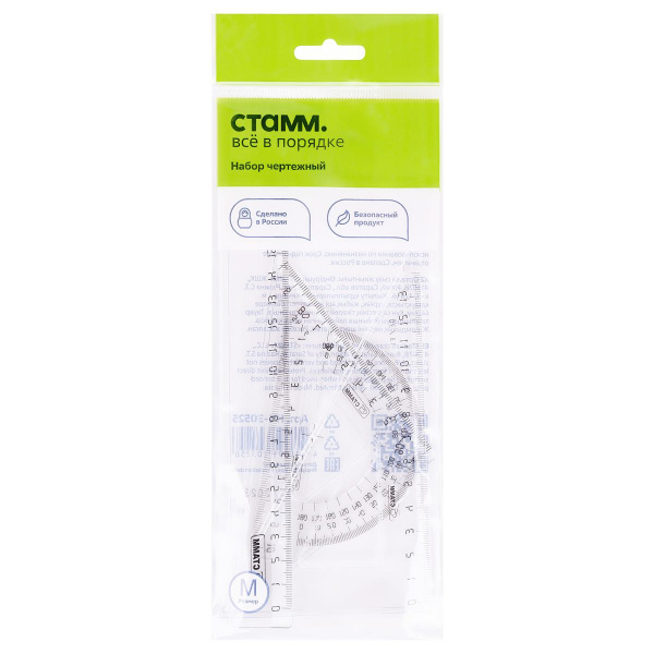 Набор чертёжный средний СТАММ предназначен для выполнения чертёжных и измерительных работ.