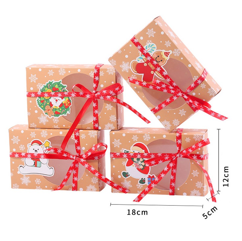 Набор из 4 подарочных складных коробок с прозрачным окошком + 4 ленты. Размер: 18*12*5 см.