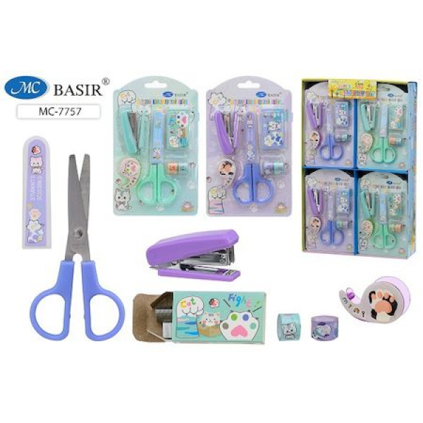 Наименование: Набор канцелярский "ЛАПКИ" ножницы+степлер+скобы+диспенсер+2 скотча МС-7757 Basir