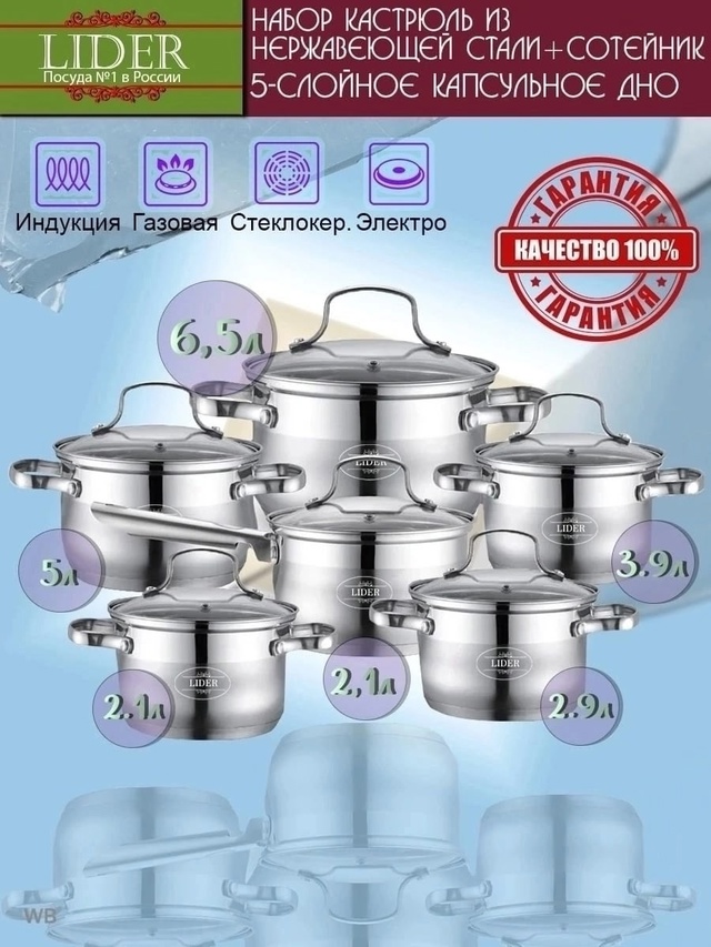 Набор посуды LIDER LD 2008 12 предметов из нержавеющей стали