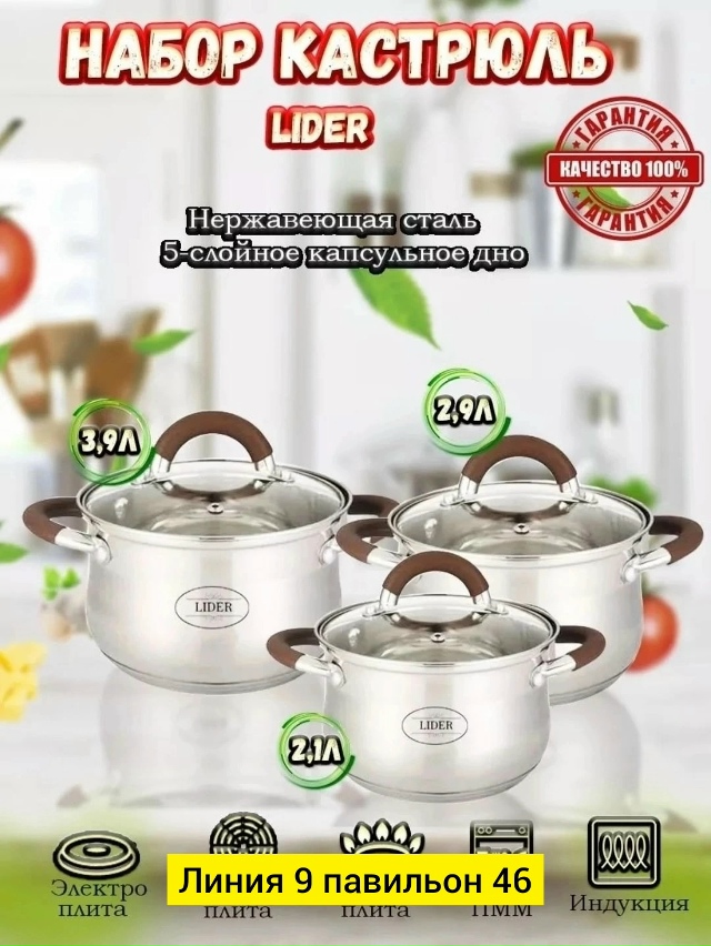 Цена штучно: 1800руб Цена оптом: 1800руб (упак. 4шт=7200руб) Посуда, нержавейка Для мужчин и для женщин Размеры 35 В наличии Цена 1800 рублей Линия 9 павильон 46 Набор посуды LIDER LD 2010 6 предметов, из нержавеющей стали (3 КАСТРЮЛИ С КРЫШКАМИ: 2.1 л(1610.5), 2,9 л(18 см ), 2,9 Л (18 см ), 3,9 Л (20 см ) Звоните и пишите в WhatsApp Садовод: 8 (999) 157-30-93 Любая транспортная компания и через автобус