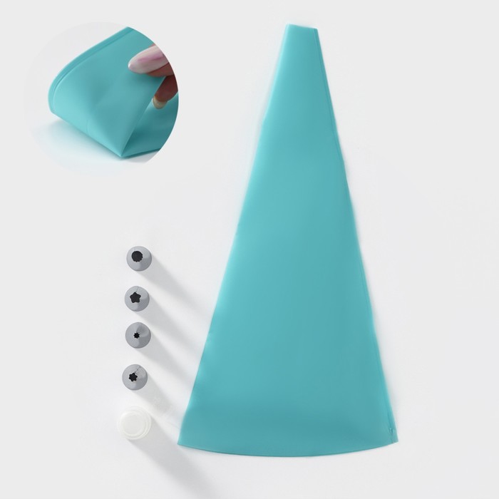 Экспериментируйте с цветом, рисунками и надписями. Пусть ваша выпечка будет уникальной! КомплектацияНабор: кондитерский мешок - 1 шт; адаптер для насадок - 1 шт; насадки кондитерские - 4 шт.Комментарии к товару