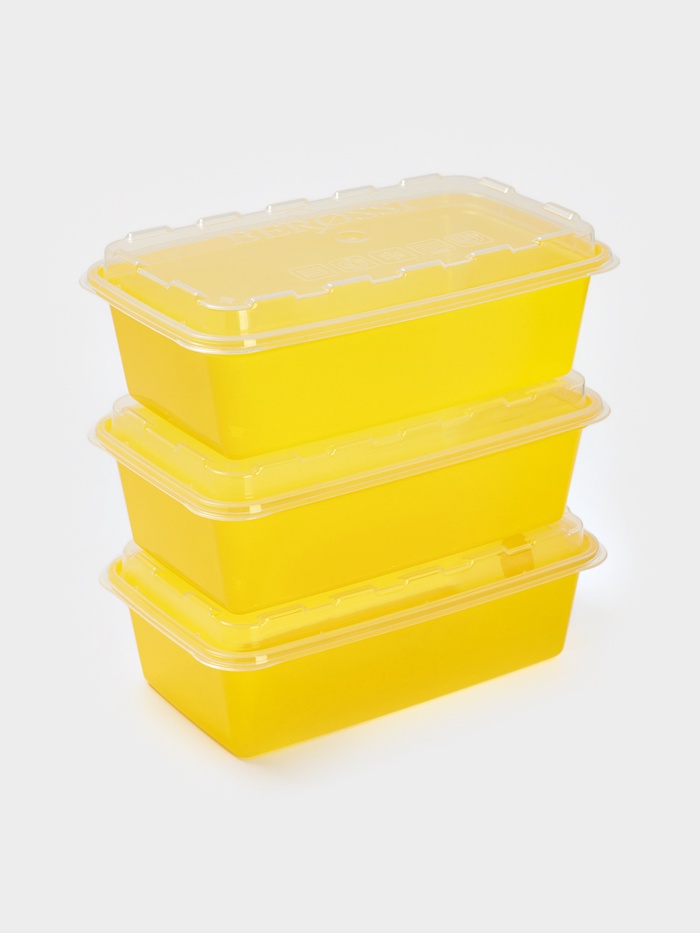 Набор контейнеров для заморозки BEROSSI Zip, 3 шт., 1 л, пластик, желтый поможет при организации выездов на природу, на дачу или в поход: крышка плотно прилегает к каждому контейнеру, исключая пролив. Пищевой пластик экологичен и безопасен, а яркая расцветка заметно поднимет настроение и аппетит при приеме пищи.