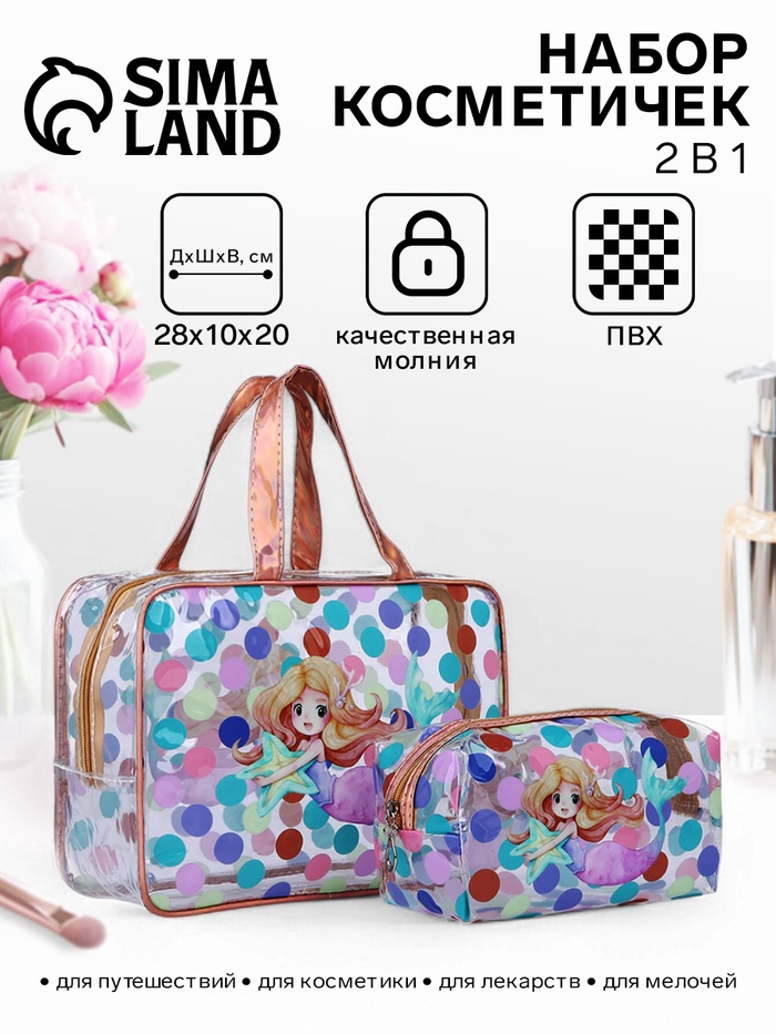Цвет: Золотистый Для кого: Для девочки, Для женщины Тематика: Подводный мир, Горошек (кружочки) Особенности косметичек: Для бассейна, С рисунком, Цветные Страна: Китай В боксе: 200 набор Состав: ПВХ Материалы: ПВХ Фасовка: по 1 набор Индивидуальная упаковка: Пакет (БОПП, полиэтилен, ПВХ, дой-пак) Габариты товара: 28 см × 10 см × 20 см Сертификат: ЕАС Длина, см: 28 Ширина, см: 10 Высота, см: 20 Количество отделений: 1 В наборе, шт.: 2 Вид застёжки: Молния Рисунок: Да Материал: ПВХ Размер: Большой Фиксированная цена: Да ![]() КомплектацияРазмер большой косметички 28×10×20 см Размер маленькой косметички 20×9×10 см ДополнительноКомментарии к товару