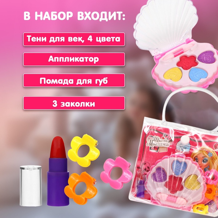 Составляющие набора: Помада, Аксессуары для волос, Тени, Аппликатор