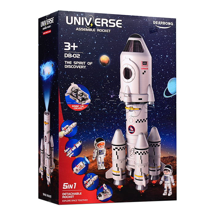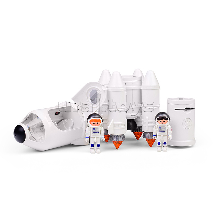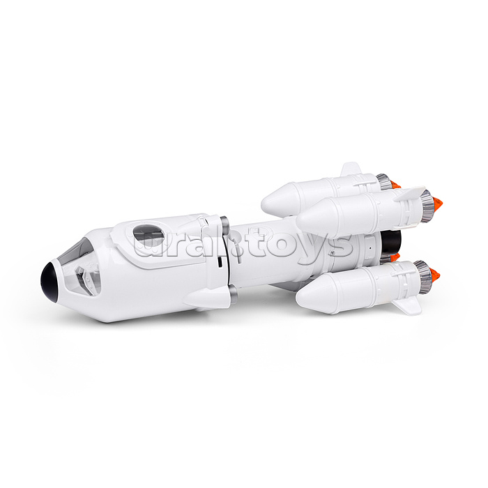 Код: 487543 Штрихкод: 6904111655354 Страна производитель: Китай Размеры упаковки: 29 x 14.5 x 42 см Количество в коробке: 10 • В наборе: - ракета (13.5х13.5х41 см.) - 3 кассеты для проектора (24 изображения космических объектов) - 2 фигурки космонавтов (4.5х2.5х8.5 см.) • Функции: - звук взлёта ракеты. - пар из сопла (при наличии воды в резервуаре) - свет проектора. - разбирается на 3 части. • Звук работает от 3-х батареек "ААА" (не входят в комплект) • Проектор работает от 3-х батареек "ААА" (не входят в комплект) • Материал: пластик. • Соответствует требованиям безопасности продукции. • Для детей от 3-х лет. Комментарии к товару