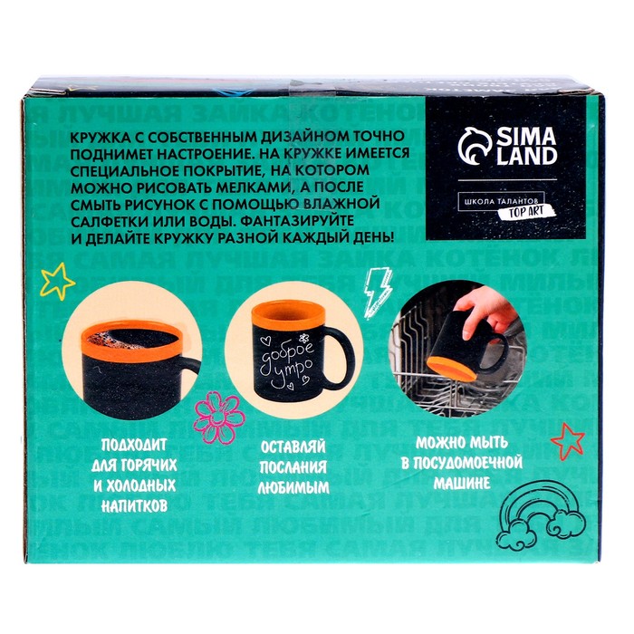 Кружка для росписи мелом поможет малышу освоить новый вид хобби. Такой предмет станет творческим развлечением для маленького непоседы, а готовое изделие будет иметь уникальный авторский рисунок.
