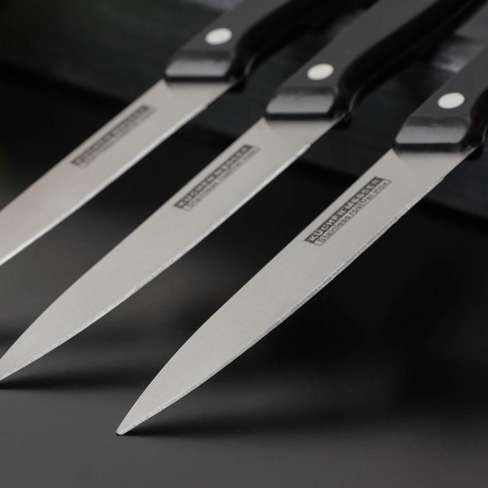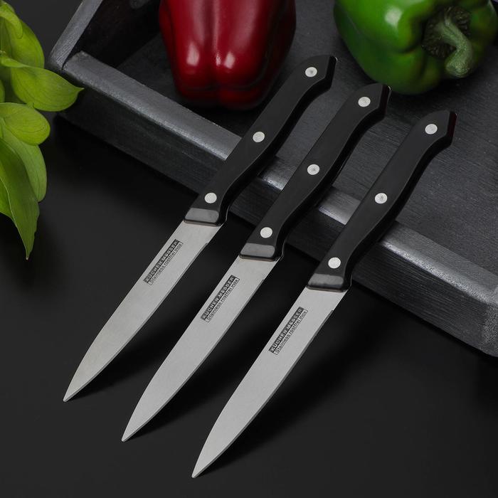 Высококачественная сталь: ножи изготовлены из высокопрочной нержавеющей стали, которая обеспечивает долговечность, устойчивость к коррозии и сохранение остроты лезвия на протяжении длительного времени.Эргономичные ручки: благодаря продуманному дизайну, ручки ножей удобно лежат в руке, обеспечивая надежный захват и предотвращая скольжение.Легкая заточка: лезвия ножей легко затачиваются с помощью точильного камня или ножеточки, что позволяет поддерживать ножи в идеальном состоянии и сохранять их остроту.