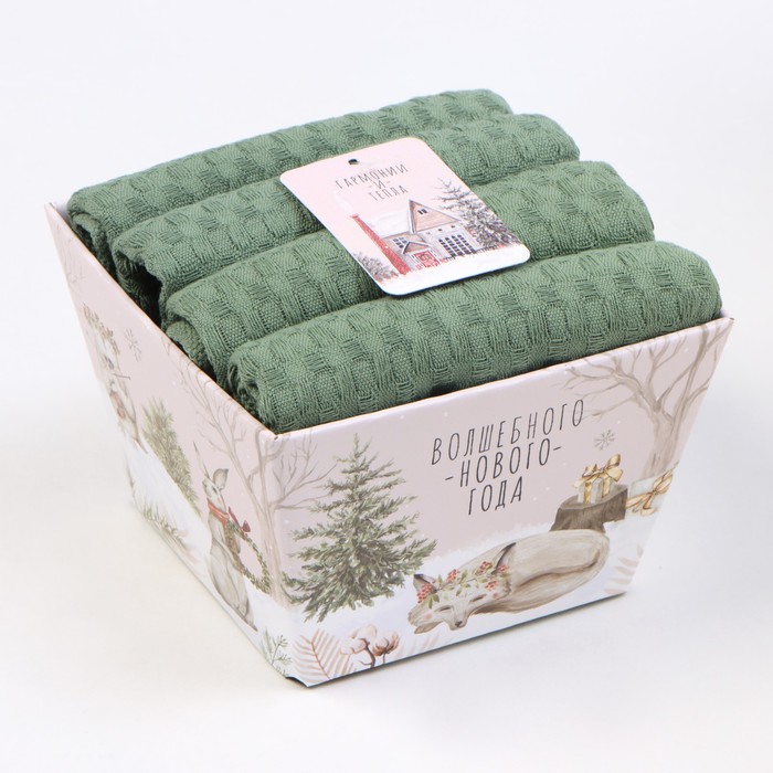 Габариты: 13 x 13 x 10 Доставка: Платная Страна: Россия В боксе: 57 набор Состав: Хлопок 100% Материалы: хлопок Фасовка: по 1 набор Сертификат: ЕАС Набор: Да Цвет: Зелёный Для кого: Для мужчины, Для женщины Форма: Прямоугольная Ткань: Вафельное полотно Плотность, г/м²: 220 Размер, см: 35 х 60 В наборе, шт.: 4 В упаковке, шт.: 4 Тематика: Однотонная Вид упаковки: Подарочная коробка Рисунок: Нет Символ года: Нет Тематика праздника: Новый год Возраст: Взрослый Материал: Вафельное полотно Декоративные элементы: Без элементов Рекомендации по уходу: Стирка при 30 °С, Барабанная сушка при низкой температуре, Не отбеливать, Глажка при 110 °С Назначение полотенец: Для рук Состав ткани: Хлопок Составляющие набора: Полотенце Возраст: Для взрослых В подарочной упаковке: Да С петелькой: Да Комментарии к товару