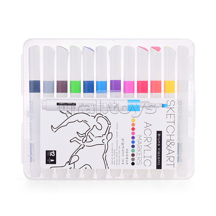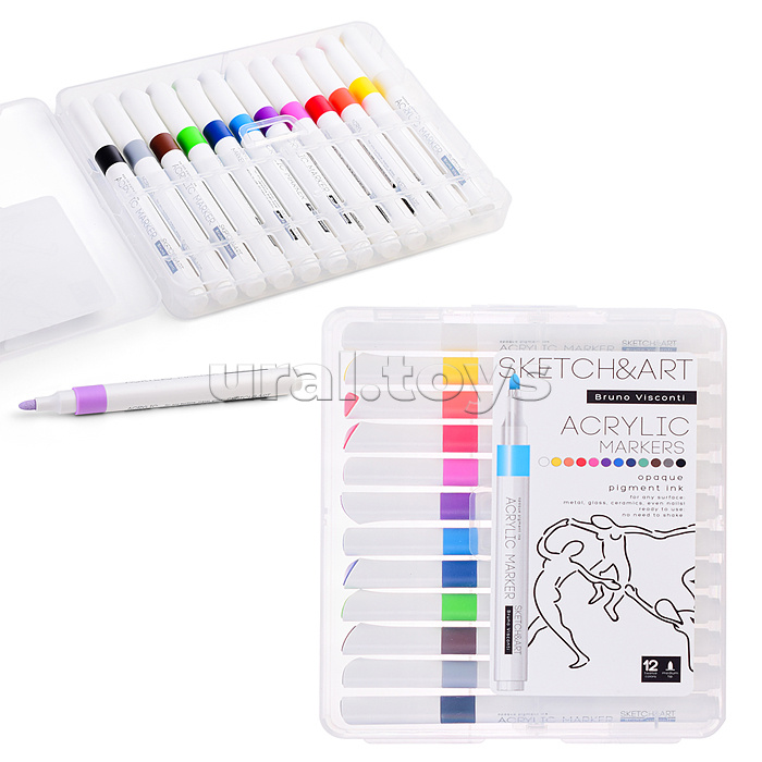 Код: 492055 Страна производитель: Китай Размеры упаковки: 15 x 2 x 18.5 см Количество в коробке: 24 Набор из 12 акриловых маркеров «SKETCH&ART» в пастельных цветах для рисования, декорирования, дизайнерских работ на любых поверхностях: холст, бумага, дерево, пластик, металл, камень, стекло, одежда, керамика. Корпус маркеров изготовлен из полипропилена - он легкий и ударопрочный. Плотно защелкивающийся колпачок обеспечивает долгую сохранность чернил от высыхания. Маркер имеет пулевидный наконечник из износостойкого волокна с шириной линии 1-3 мм. Нетоксичные пигментные чернила на водной основе с высокой степенью укрывистости быстро сохнут на поверхности, оставляя яркий след. Краски до высыхания можно смешать или растушевать кистью для достижения плавных переходов. Комментарии к товару