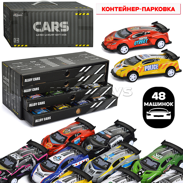 Код: 486350 Штрихкод: 6904111610247 Страна производитель: Китай Размеры упаковки: 15 x 35 x 16 см Количество в коробке: 12 В наборе 48 машинок. Размер: 6,5 см. Механизм: инерционный. Изготовлено из полимерных материалов. Соответствует требованиям безопасности продукции. Для детей от 3 лет. Комментарии к товару