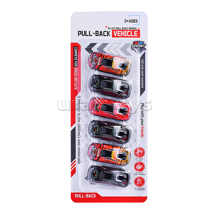 • В наборе 6 машинок. • Размеры машинок: 6,5 см. • Материалы: металл, пластик. • Соответствует требованиям безопасности продукции. • Возраст: от 3-х лет.