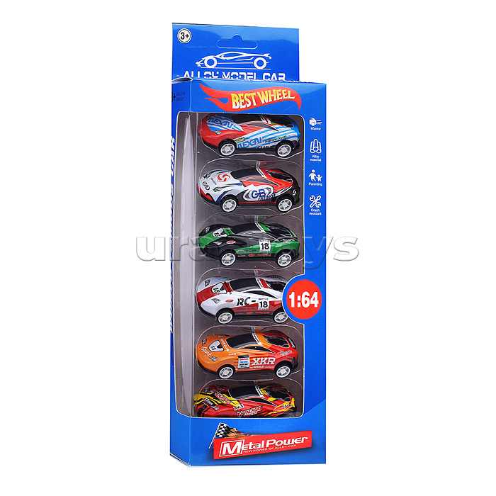 • В наборе 6 машинок с металлическим кузовом. • Размеры машинки: 6.5х3х2 см. • Инерционный механизм движения. • Соответствует требованиям безопасности и стандартам качества продукции. • Для детей от 3-х лет.