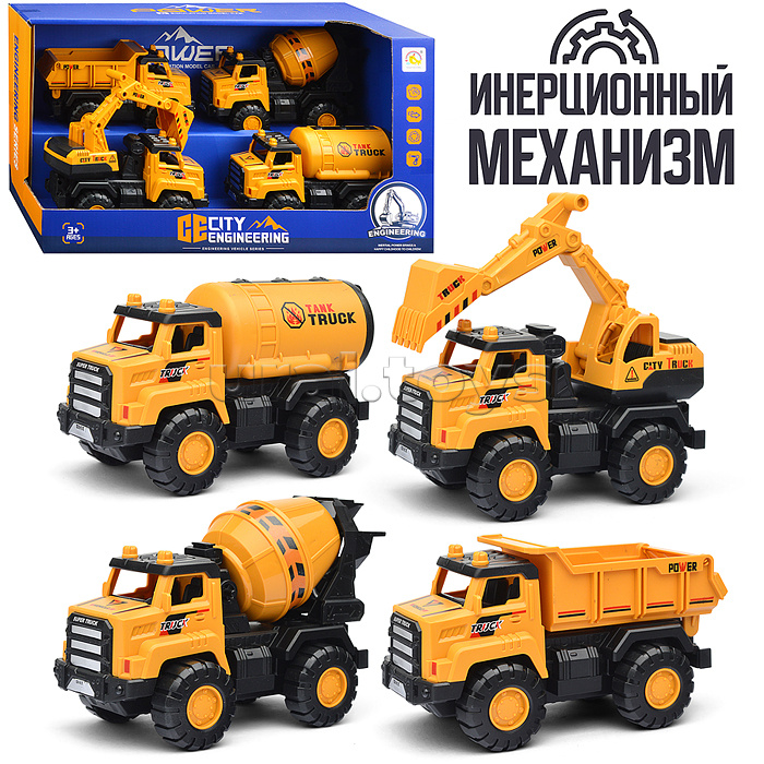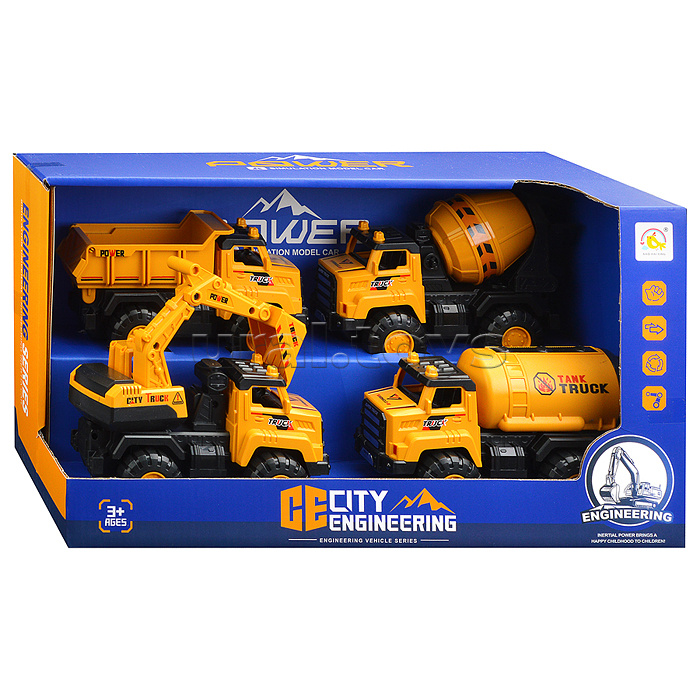 Код: 492511 Штрихкод: 6904111557566 Страна производитель: Китай Размеры упаковки: 20 x 41 x 19 см Количество в коробке: 24 • В наборе 4 машинки. • Размеры игрушки: 15х7.5х9 см. • Инерционный механизм движения. • Материал: пластик. • Соответствует требованиям безопасности и стандартам качества продукции. • Для детей от 3-х лет. Комментарии к товару