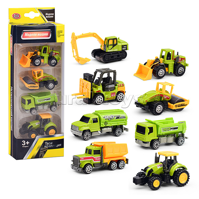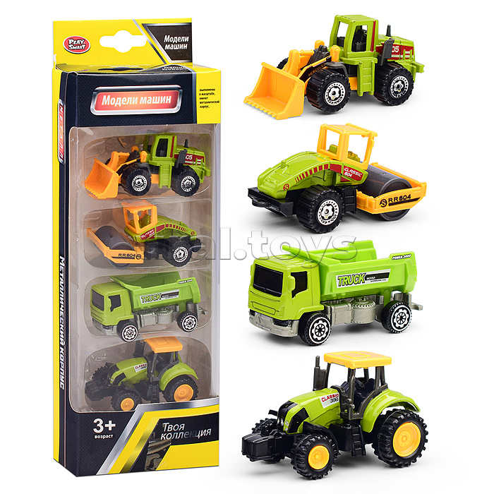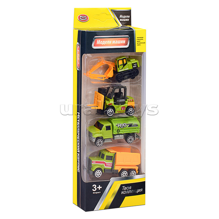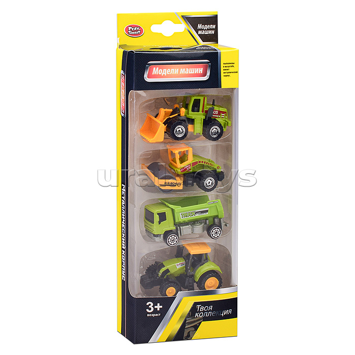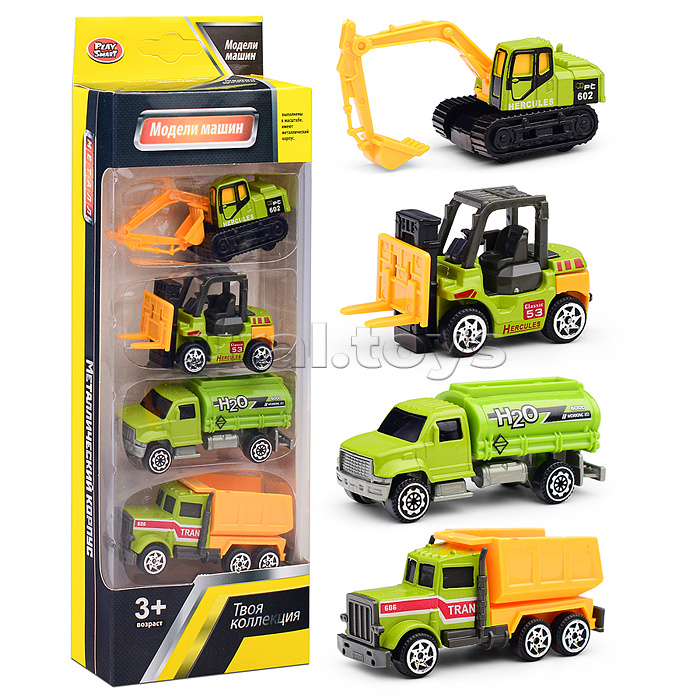 • В наборе 4 машинки (6.5 см.) • Материалы: пластик, металл. • Соответствует требованиям безопасности продукции. • Для детей от 3-х лет.