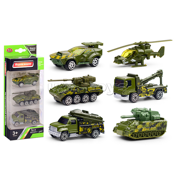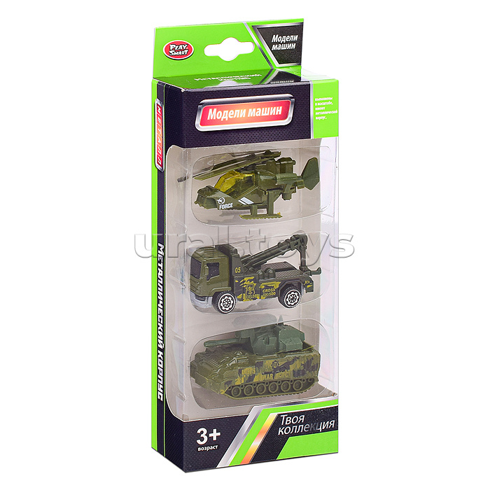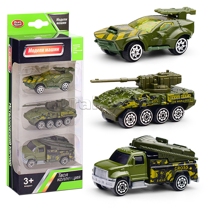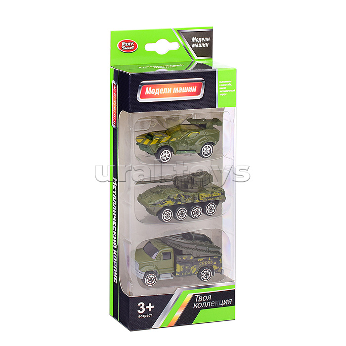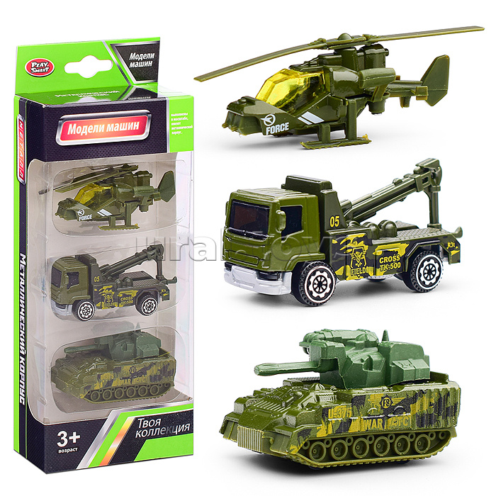 В наборе: • 3 единицы военной техники (7.5 см) • Материал: металлический корпус, полимерные материалы. • Соответствует требованиям безопасности продукции. • Для детей от 3-х лет.