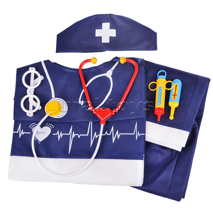 • В наборе: - колпак. - накидка. - штаны. - стетоскоп. - шприц. - градусник. - очки. • Для детей ростом до 130 см. • Материалы: полиэстер, пластик. • Соответствует требованиям безопасности и стандартам качества продукции. • Для детей от 3-х лет.
