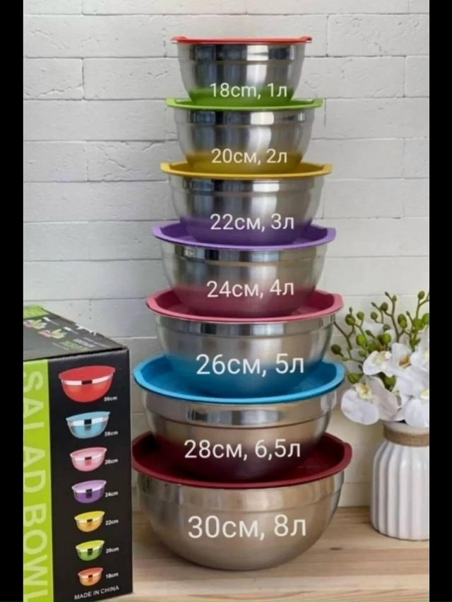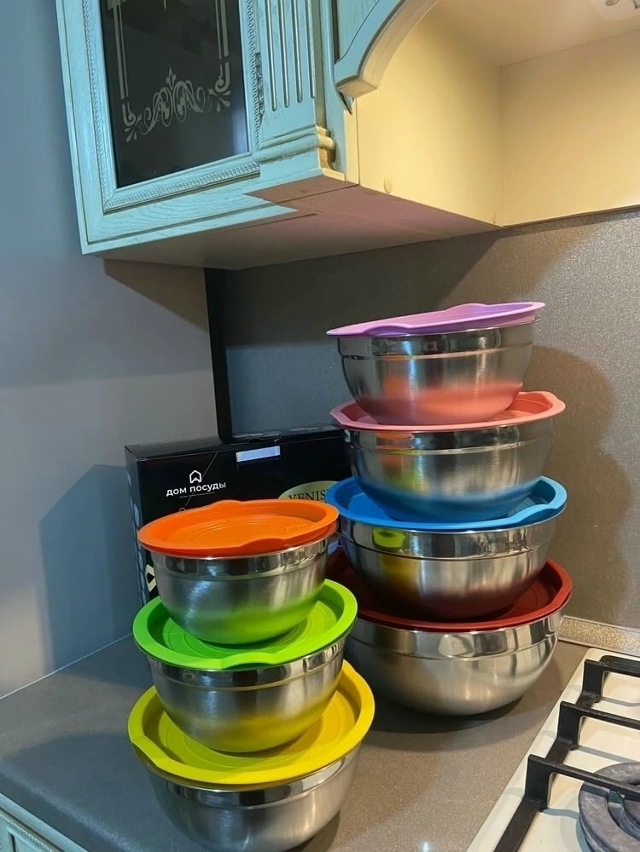 миска кухонная металлическая; миски 7 шт; миски с крышками