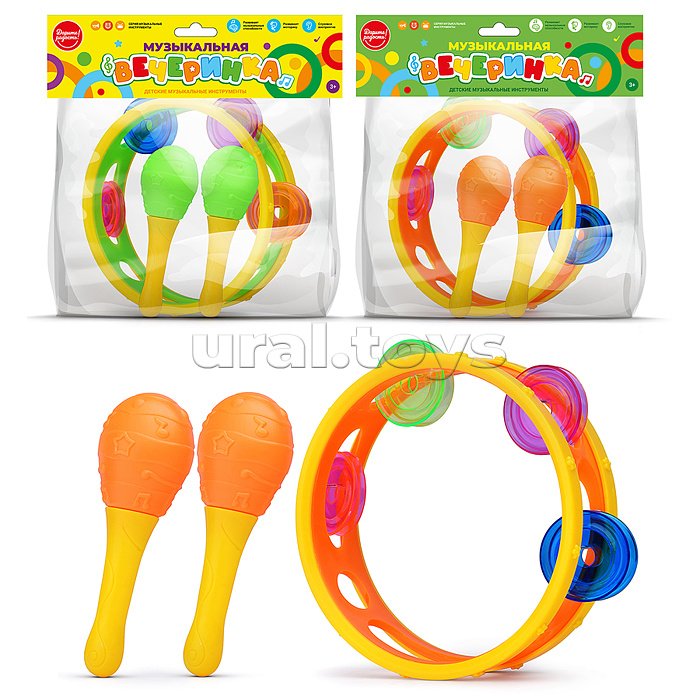 Код: 487283 Страна производитель: Китай Размеры упаковки: 21 x 20 x 5 см Количество в коробке: 144 • В наборе: - бубен (12.5х12.5х3 см.) - 2 маракаса (12х4.5х4.5 см.) • Материал: пластик. • Соответствует требованиям безопасности продукции. • Для детей от 3-х лет. Комментарии к товару