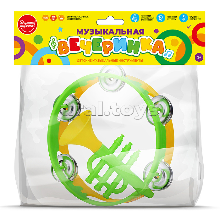 Код: 487279 Страна производитель: Китай Размеры упаковки: 21 x 24 x 4 см Количество в коробке: 90 • В наборе: - бубен с металлическими бубенцами (15х15х3.5 см.) - дудка (15.5х6х8.5 см.) • Материал: пластик. • Соответствует требованиям безопасности продукции. • Для детей от 3-х лет. Комментарии к товару