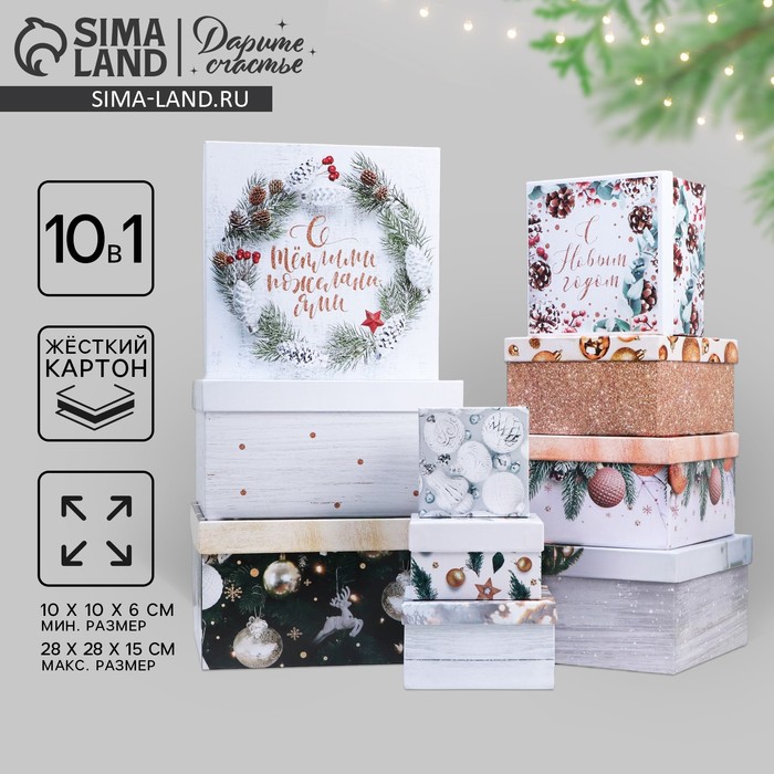 Габариты: 15,5 x 28,5 x 28,5 Доставка: Платная Страна: Россия В боксе: 9 набор Состав: Картон Материалы: картон Фасовка: по 1 набор Индивидуальная упаковка: Стрейч-пленка Сертификат: ЕАС Цвет: Бежевый, Чёрный, Серый Форма: Квадратная Плотность, г/м²: 1000 Количество вложений в наборе: 10 в 1 Высота большей коробки, см: 15 Длина большей коробки, см: 28 Ширина большей коробки, см: 28 Тематика: Шары, Растительный орнамент Символ года: Нет Тематика праздника: Новый год Материал: Картон Вид: Наборы коробок Размер: Большой (25-45 см) Дизайн: С рисунком, надписью Размеры коробок: 10 х 10 х 6 см 12 х 12 х 7 см 14 х 14 х 8 см 16 х 16 х 9 см 18 х 18 х 10 см 20 х 20 х 11 см 22 х 22 х 12 см 24 х 24 х 13 см 26 х 26 х 14 см 28 х 28 х 15 см Комментарии к товару