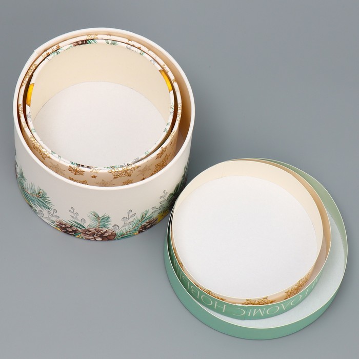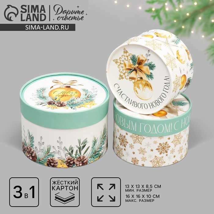 Габариты: 16 x 16 x 11 Страна: Россия В боксе: 30 набор Состав: Картон Материалы: картон Фасовка: по 1 набор Индивидуальная упаковка: Пакет Сертификат: ЕАС Цвет: Белый Форма: Круглая, Цилиндрическая Плотность, г/м²: 250 Количество вложений в наборе: 3 в 1 Высота большей коробки, см: 10 Длина большей коробки, см: 16 Ширина большей коробки, см: 16 Тематика: Новогодняя Символ года: Нет Тематика праздника: Новый год Материал: Картон Размер: Малый (11-17 см) Дизайн: С рисунком, надписью Размеры коробок: 13 х 13 х 8.5 см 14 х 14 х 9 см 16 х 16 х 10 см Комментарии к товару