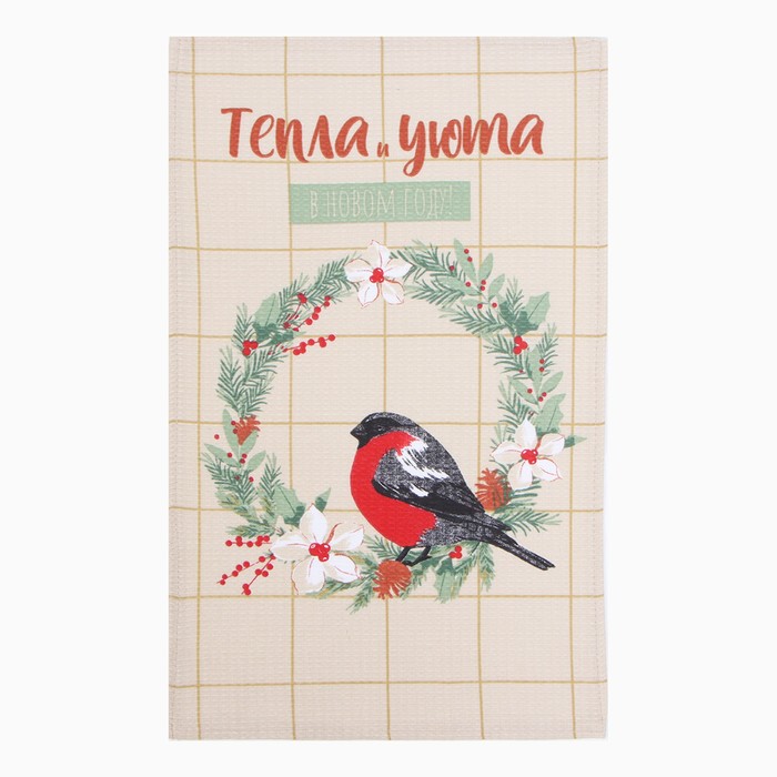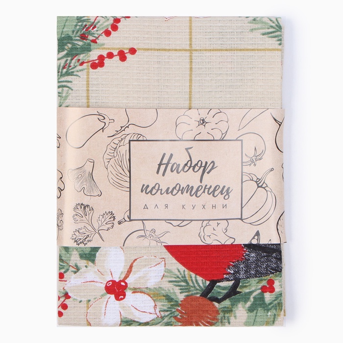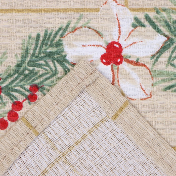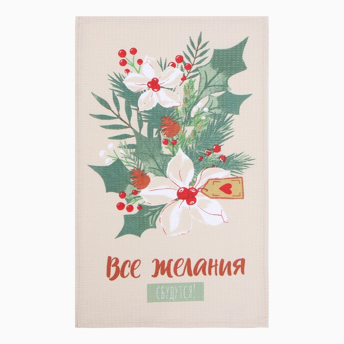 Набор новогодних полотенец Доляна «Рождественские цветы» 28×46 см - 2 штуки, 100% хлопок, вафля 160 г/м²