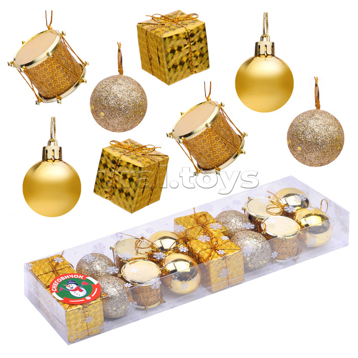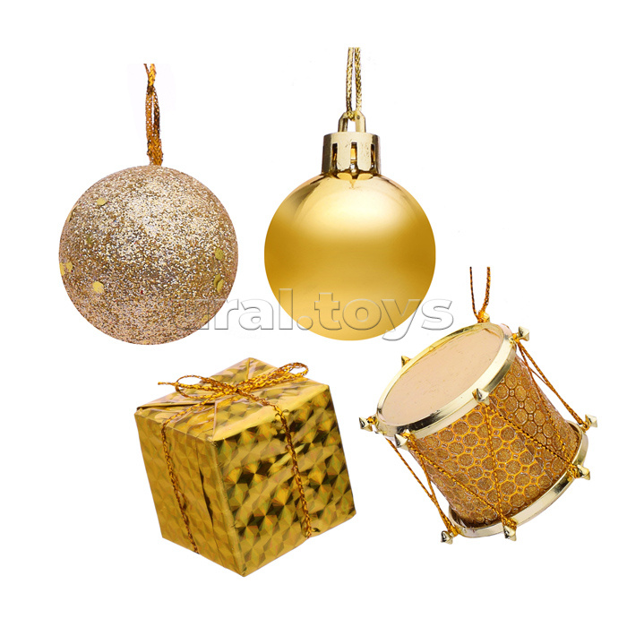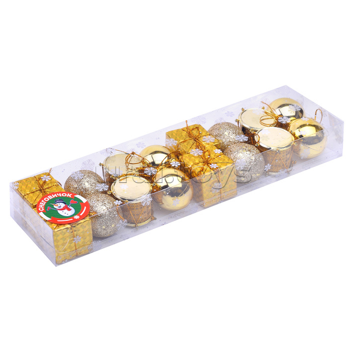 Набор новогодних шаров "Новогодние забавы" золото (4см*16шт)