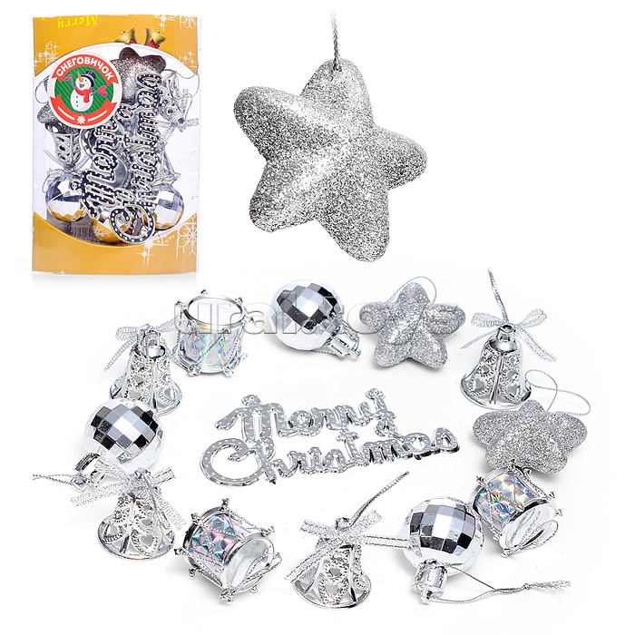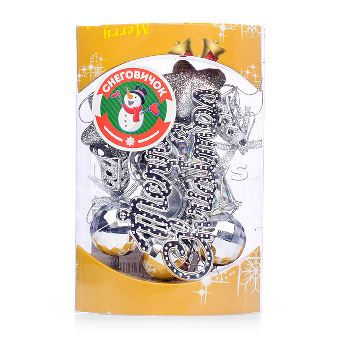 • В наборе: - 12 подвесных игрушек (3-4 см.) - пластиковая надпись (10х5 см.) • Материал: пластик.