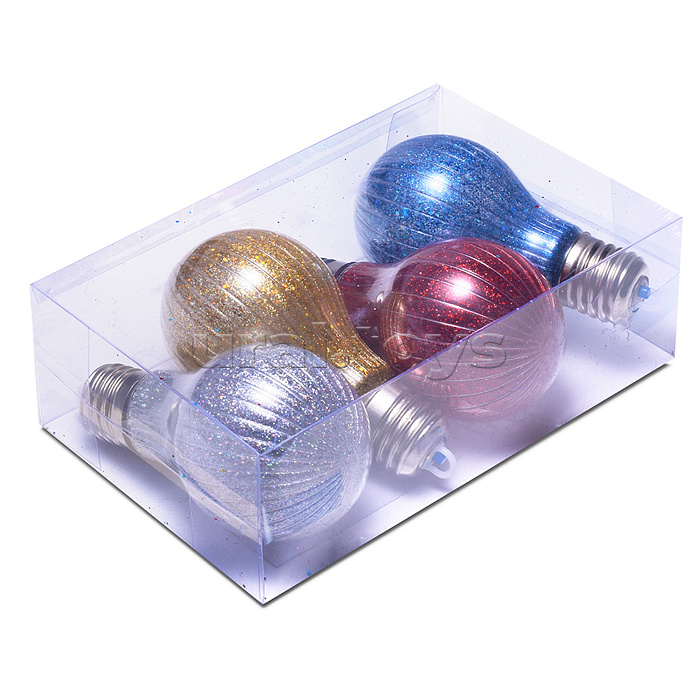 • В наборе: - 4 новогодних украшений 10,5 см. • Работают от 3 батареек LR44 (входят в комплект). • Материал: пластик. • Соответствует требованиям безопасности продукции.