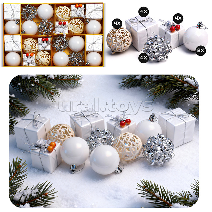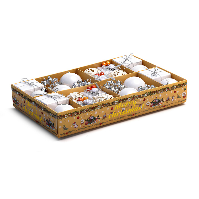 Код: 494105 Штрихкод: 6978459062273 Страна производитель: Китай Размеры упаковки: 29 x 19 x 5 см Количество в коробке: 48 • В наборе: - 24 новогодних украшений 5 см. • Материал: пластик. • Соответствует требованиям безопасности продукции. Комментарии к товару
