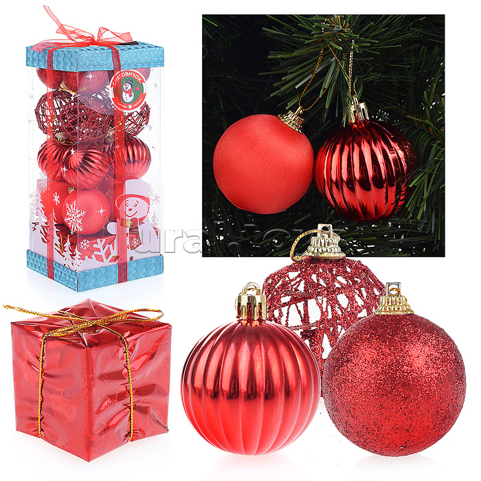 • В наборе 20 новогодних украшений • 2 вида: шары, подарки. • Размеры украшений: 4.5-5 см. • Материал: пластик. • Соответствует требованиям безопасности продукции.