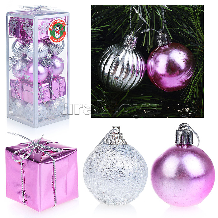 Код: 341442 Страна производитель: Китай Размеры упаковки: 20 x 8 x 8 см Количество в коробке: 120 • В наборе 20 новогодних украшений. • 2 вида: шары, подарки. • Размеры украшений: 3-3.5 см. • Материал: пластик. • Соответствует требованиям безопасности продукции. Комментарии к товару