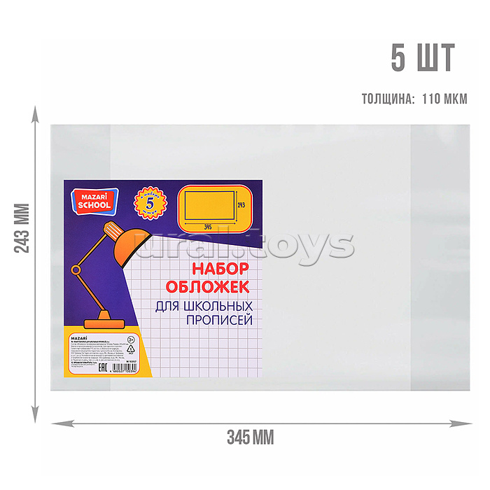 Код: 492184 Страна производитель: Россия Размеры упаковки: 25 x 18 x 0.5 см Количество в коробке: 150 • Размеры: - для школьных прописей 243х345 мм. • Толщина: 110 мкм. • Материал: ПВХ. • Количество в упаковке: 5 шт. Комментарии к товару
