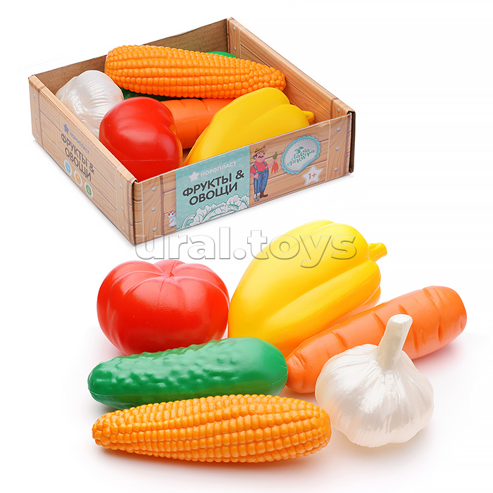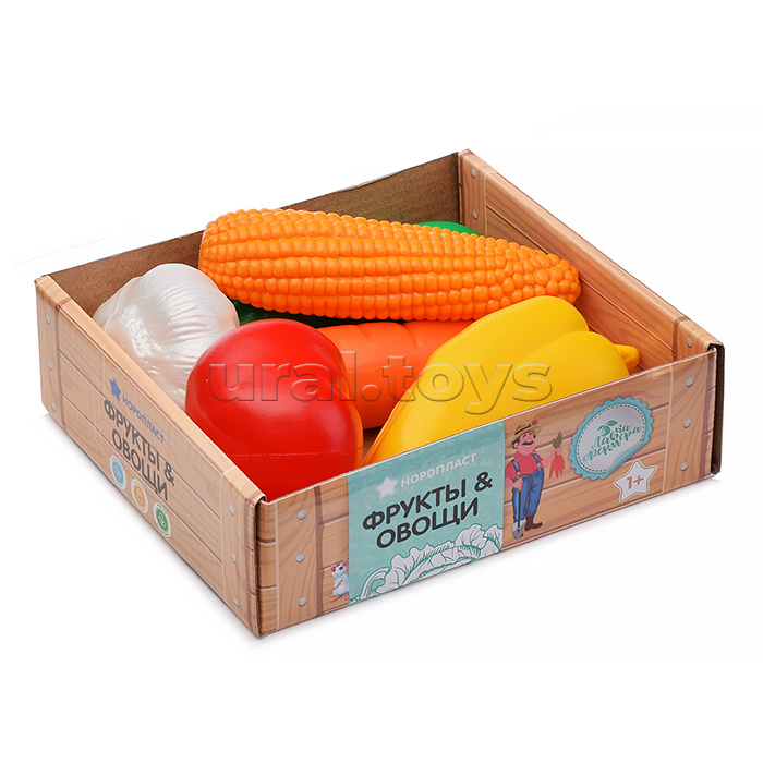 Код: 368422 Страна производитель: Россия Размеры упаковки: 17 x 14 x 6 см Количество в коробке: 20 Обновленные наборы в новом удобном ящике, с яркими детализировано проработанными фруктами познакомят малышей с разными фигурами и формами, учат различать цвета. А детишки постарше могут использовать набор фруктов в различных сюжетно – ролевых играх. Набор абсолютно безвреден для ребенка, так как выполнен из прочной безопасной пластмассы. Ящик имеет небольшие размеры, и его удобно брать с собой на прогулку. *сертифицированные материалы, яркие цвета, четкая деталировка, упаковка - картонная коробка Комплектация: 1 чеснок, 1 огурец, 1 морковь, 1 помидор, 1 перец, 1 кукуруза. Размер: 6 - 12 см. Комментарии к товару
