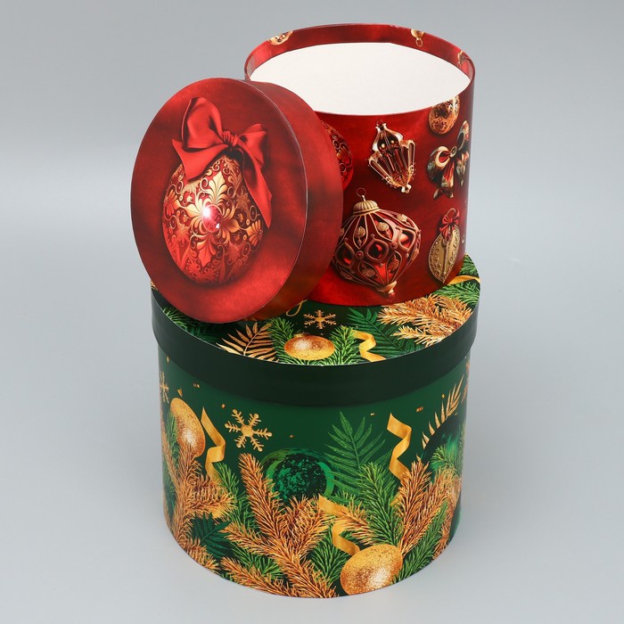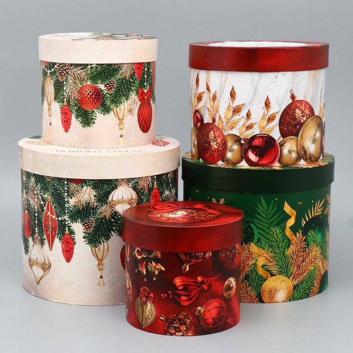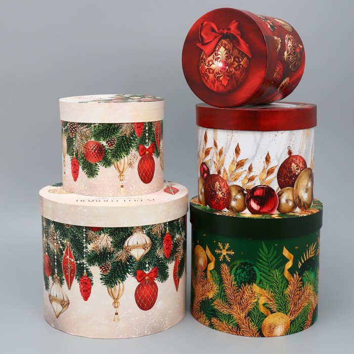 Габариты: 25 x 24 x 22 Доставка: Платная Страна: Россия В боксе: 6 набор Состав: Картон Материалы: картон Фасовка: по 1 набор Индивидуальная упаковка: Картонная коробка Сертификат: ЕАС Цвет: Красный, Зелёный, Белый Форма: Круглая, Цилиндрическая Плотность, г/м²: 1000 Количество вложений в наборе: 5 в 1 Высота большей коробки, см: 19,5 Длина большей коробки, см: 22 Ширина большей коробки, см: 22 Тематика: Новогодняя Символ года: Нет Тематика праздника: Новый год Размер: Средний (18-24 см) Дизайн: С рисунком, надписью Размеры коробок: 14 х 14 х 13 см 16 х 16 х 14 см 18 х 18 х 15 см 20 х 20 х 17.5 см 22 х 22 х 19.5 см Комментарии к товару