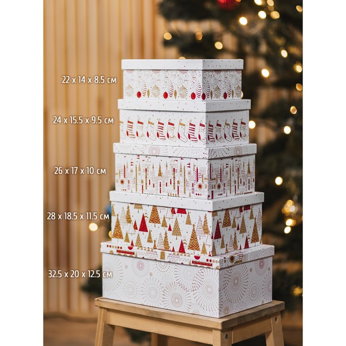 Габариты: 13 x 33,5 x 21 Страна: Россия В боксе: 1 набор Состав: Картон Материалы: картон Фасовка: по 1 набор Индивидуальная упаковка: Плёнка Сертификат: ЕАС Цвет: Белый Форма: Прямоугольная Плотность, г/м²: 1000 Количество вложений в наборе: 5 в 1 Высота большей коробки, см: 12,5 Ширина большей коробки, см: 20 Длина большей коробки, см: 32,5 Тематика: Новогодняя Символ года: Нет Тематика праздника: Новый год Материал: Картон Вид: Наборы коробок Размер: Большой (25-45 см) Дизайн: С рисунком, надписью Размеры коробок: Комментарии к товару