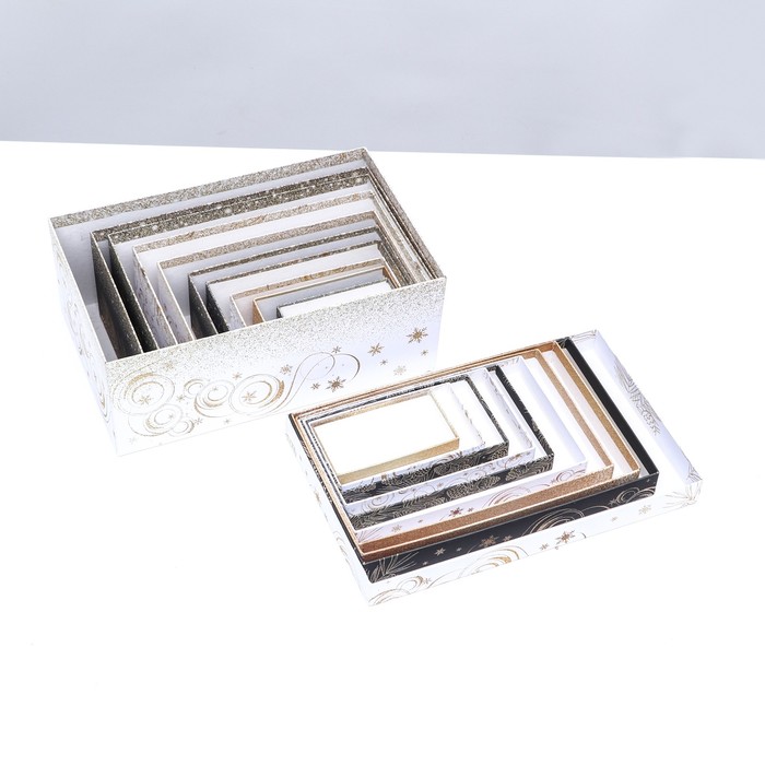 Габариты: 30 x 19 x 11,5 Страна: Россия В боксе: 1 набор Состав: Бумага, картон Материалы: бумага, картон Фасовка: по 1 набор Индивидуальная упаковка: Плёнка Сертификат: ЕАС Набор: Да Цвет: Белый, Чёрный Форма: Прямоугольная Длина, см: 30 Ширина, см: 19 Высота, см: 11,5 Количество вложений в наборе: 10 в 1 Высота большей коробки, см: 13 Ширина большей коробки, см: 20 Длина большей коробки, см: 30,5 Тематика: Новогодняя Рисунок: Да Символ года: Нет Тематика праздника: Новый год Материал: Картон Вид: Прямоугольные, Наборы коробок Размер: Большой (25-45 см) Форма: Прямоугольная Окошко: Нет Дизайн: С рисунком, надписью Изящно упакованный подарок показывает вашу внимательность и заботу к получателю. Именно поэтому используют подарочные коробки, так как - это один из популярных видов упаковки. Приятный бонус красивых коробочек, их всегда можно оставить для хранения каких-либо мелочей, или же - как стильный элемент в интерьере. Преимущества: