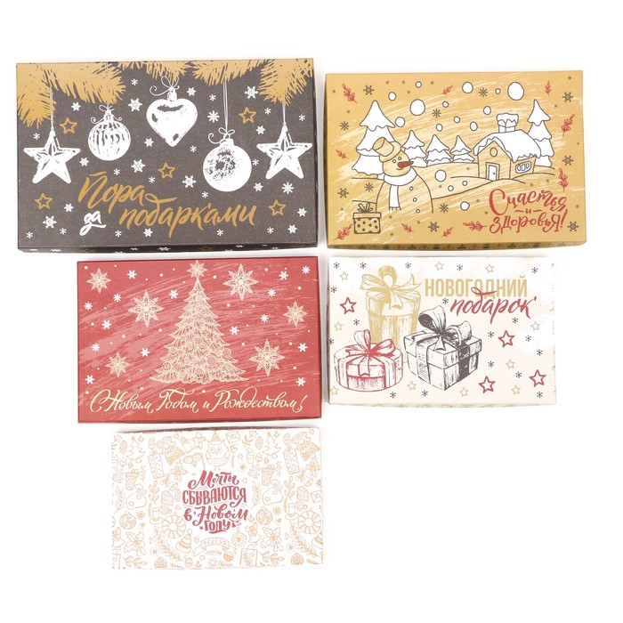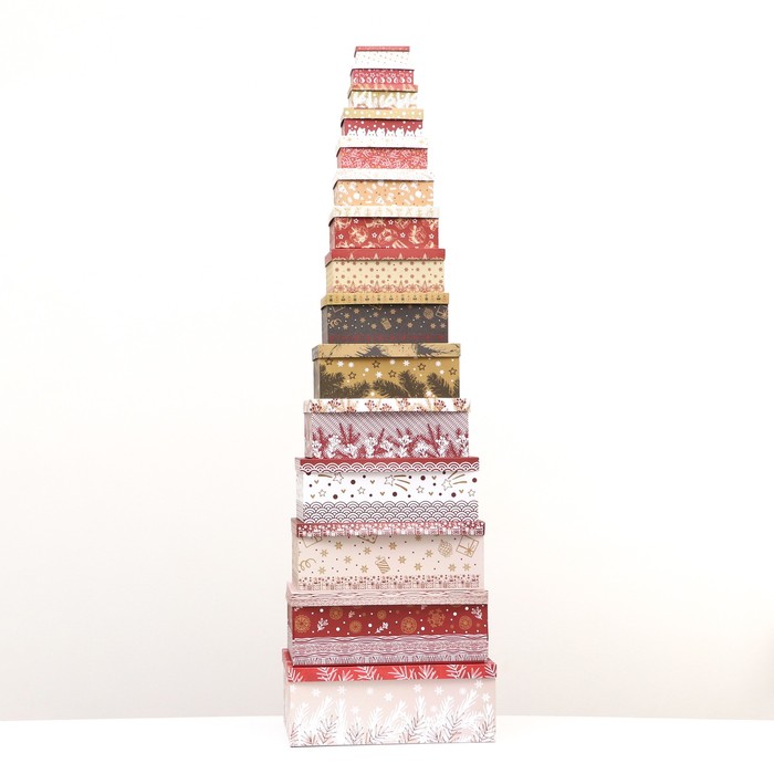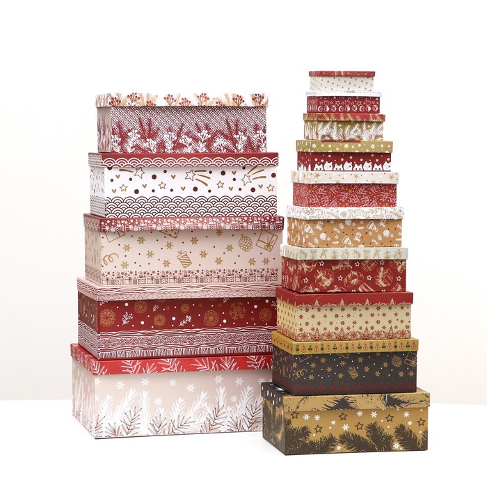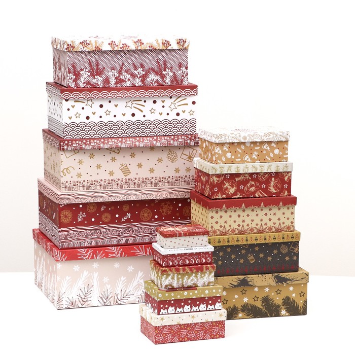 Габариты: 47,6 x 35 x 17,5 Страна: Россия В боксе: 1 набор Состав: Картон Материалы: картон Фасовка: по 1 набор Индивидуальная упаковка: Плёнка Сертификат: ЕАС Набор: Да Цвет: Разноцветный Форма: Прямоугольная Плотность, г/м²: 900 Количество вложений в наборе: 15 в 1 Высота большей коробки, см: 17,5 Ширина большей коробки, см: 35,2 Длина большей коробки, см: 47,6 Тематика: Новогодняя Символ года: Нет Тематика праздника: Новый год Материал: Картон Вид: Прямоугольные, Наборы коробок Размер: Очень большой (от 45 см) Дизайн: С рисунком, надписью Набор коробок универсальный. Лёгкие и прочные подарочные коробки изготовлены из гофрокартона и оформлены ламинированной дизайнерской бумагой. Это позволяет упаковке сохранять аккуратный внешний вид в течение длительного времени. Преимущества:- можно использовать не только как упаковку для презента, но и легко встроить в домашнюю систему хранения полезных мелочей Преимущества: - плотный картон; - оригинальное оформление; - удобно при транспортировке. Комментарии к товару