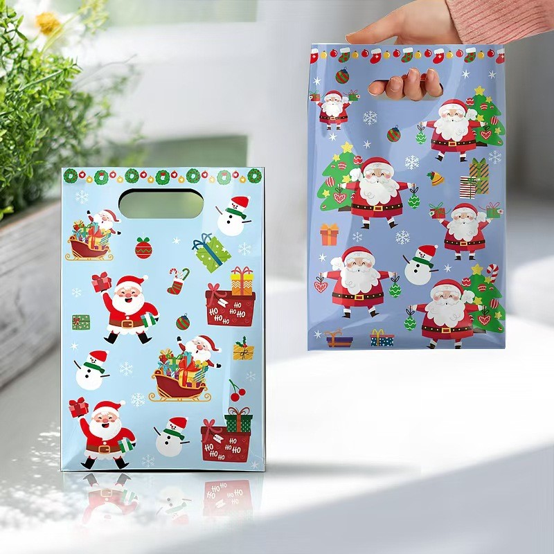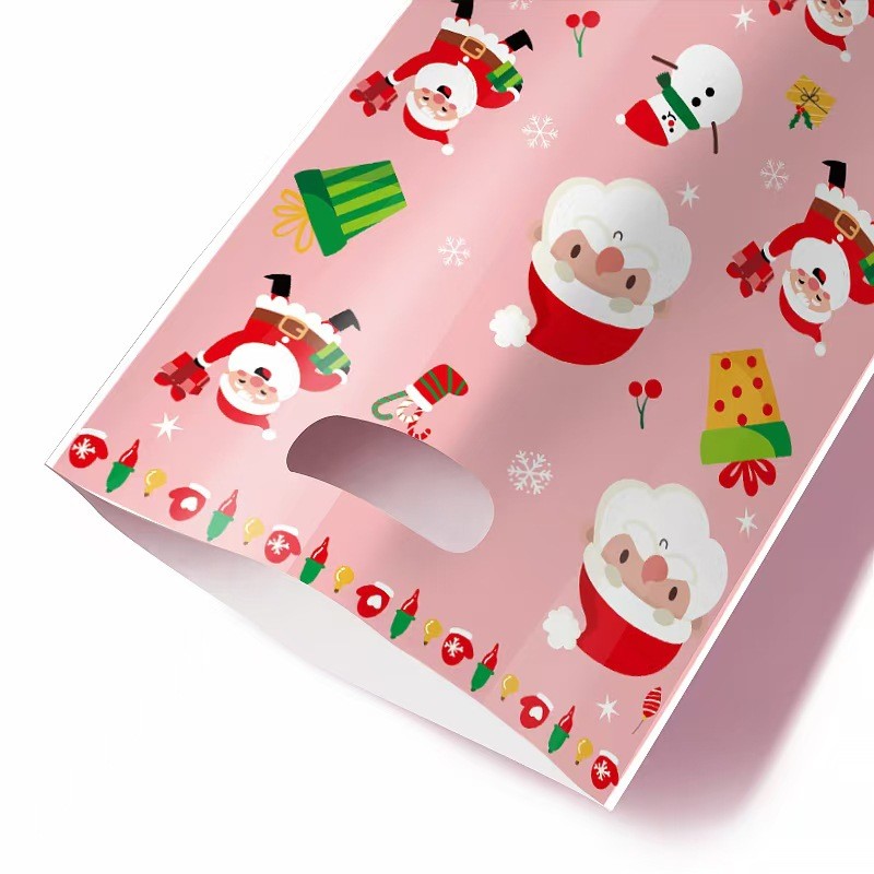 Подарочный полиэтиленовый пакет с ярким красочным новогодним оформлением.