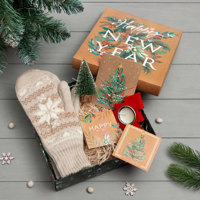Составляющие набора: Свеча, Варежки, Подсвечник, Ёлочное украшение, Открытка