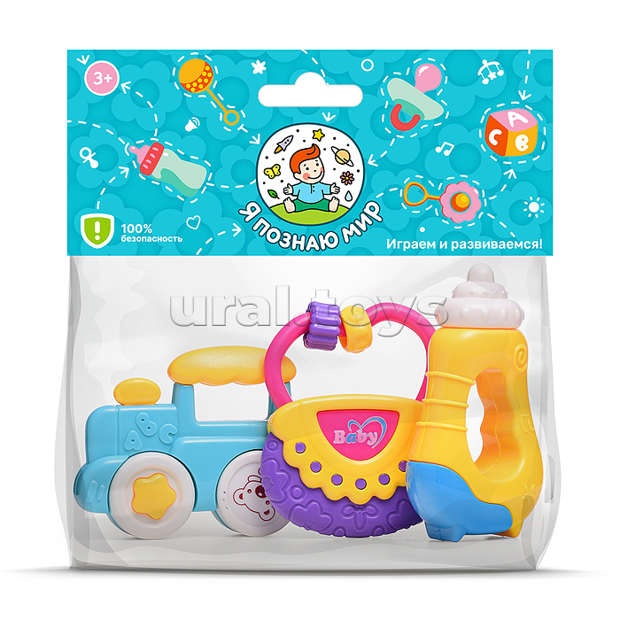 Код: 491410 Штрихкод: 4630432245500 Страна производитель: Китай Размеры упаковки: 23.5 x 4 x 11 см Количество в коробке: 108 • В наборе 3 погремушки. • Размеры игрушки: 9х2.5х8 см. • Материал: пластик. • Соответствует требованиям безопасности продукции. • Для детей от 3-х лет. Комментарии к товару