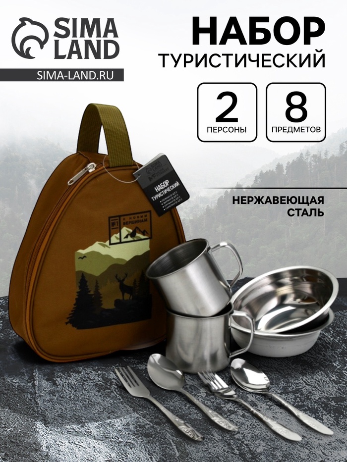 Производитель: Сима-ленд Габариты: 10 x 13 x 20 Страна: Китай В боксе: 42 набор Состав: Полиэстер, коррозионностойкая сталь Материалы: полиэстер, Коррозионностойкая сталь Фасовка: по 1 набор Индивидуальная упаковка: Пакет (БОПП, полиэтилен, ПВХ, дой-пак) Габариты товара: 23 см × 20 см × 8 см Сертификат: СТР Набор: Да Цвет: Серебристый Для кого: Для мужчины, Унисекс Количество персон: 2 В наборе, шт.: 8 Вид упаковки: Пакет Рисунок: Да Тематика праздника: Универсальная тематика Материал: Нержавеющая сталь Составляющие набора: Ложка, Кружка, Вилка, Тарелка Возраст: Для взрослых Назначение: Для приёма пищи Комплектация: Столовая посуда, Столовые приборы
