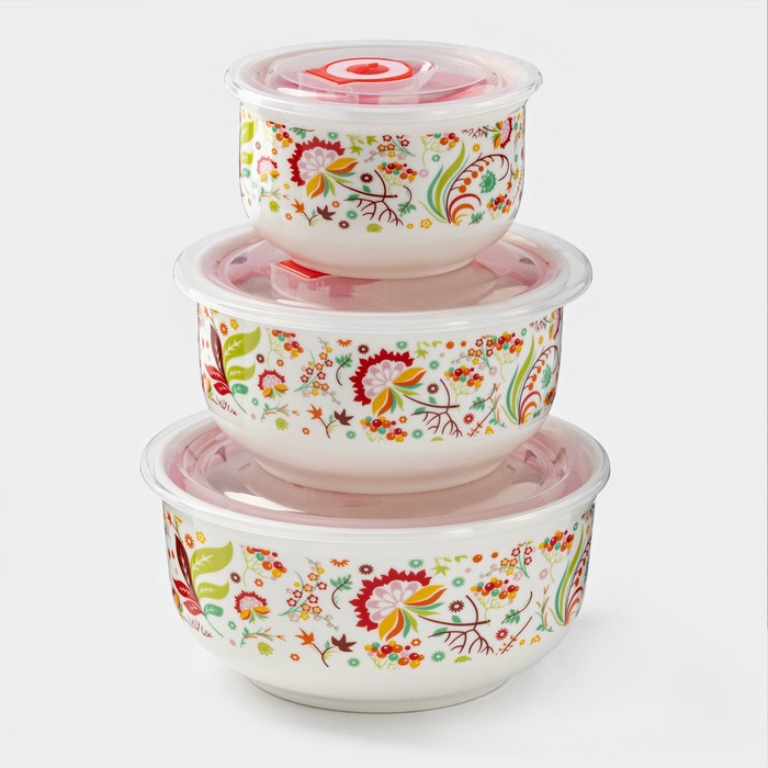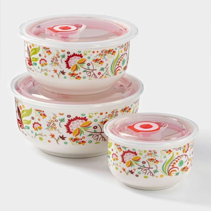 Раскройте вкус каждого дня Больше не нужно беспокоиться о сохранности ваших блюд! С набором салатников "Цветущий сад" ваши салаты будут оставаться свежими и аппетитными, а вы сможете наслаждаться вкусом здоровой и вкусной пищи в любое время. Добавьте красок и удобства в вашу кулинарную жизнь! КомплектацияКонтейнер - 3 шт Комментарии к товару